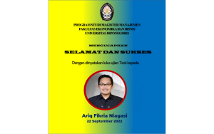 Telah dilaksanakan ujian Tesis an. Ariq Fikria Niagasi Selamat dan sukses kepada mahasiswa Prodi MM FEB UNDIP yang telah dinyatakan lulus ujian Tesis pada hari