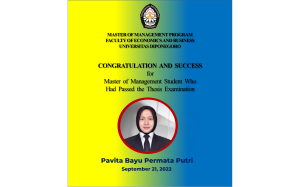 Pavita Bayu Permata Putri Congratulation and success to Pavita Bayu Permata Putri the student of Master of Management Program Faculty of Economics and Business Universitas Diponegoro who had passed